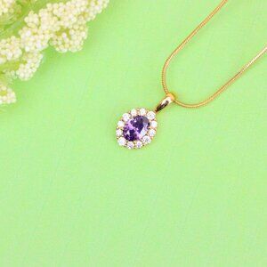 "Purple Oval Pendant with Halo in Gold-Plated Brass – Delicate Glamour, XPPT1816