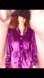 Stylish purple sparkling velvet pantsuit with a matching belt. Perfect for a chic look.