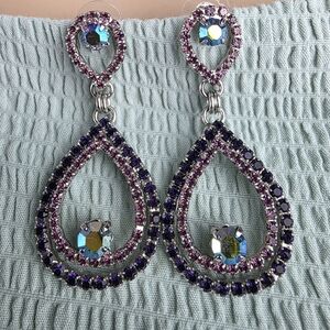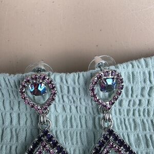 Add a touch of elegance to your outfit with these stunning purple and pink crystal drop earrings. Perfect for any occasion.