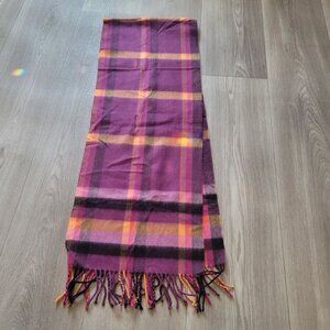 Purple Plaid Cashmere Scarf With Fringe For Women