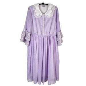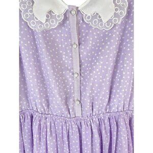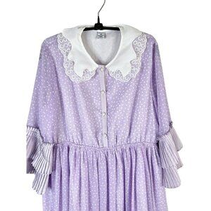 Purple Polka Dot Dress Large Pastel Lace Collar Accordion Sleeve Lolita Coquette