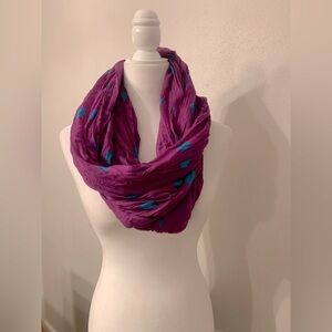 Add a pop of color to your outfit with this vibrant purple scarf featuring playful polka dots. Perfect for any season.