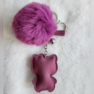 Adorable soft keychain featuring a purple pom pom and a purple Hello Kitty charm. Perfect for adding a playful touch to your accessories such as keys, bag, tote, purse or bookbag!