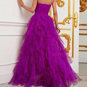 Purple Preppy Womens Split Thigh Mesh Overlay Tube Dress