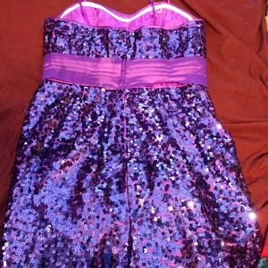 Purple form fitting sequin prom dress! Super cute! Received several compliments at my senior prom! Has a "sticky" line sewn on the inside to help keep it from slipping! Perfect condition, only worn once!