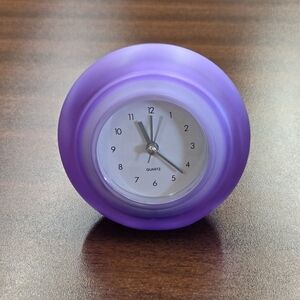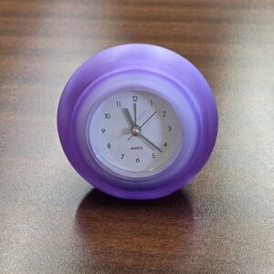 Enhance your room or office decor with this elegant mini Quartz purple clock. Its sleek design adds a touch of sophistication to any room. Perfect size for a desk or nightstand.