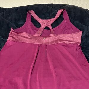 Stylish purple racerback tank top. Perfect for workouts or casual wear.