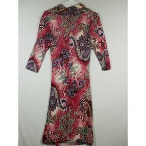 Purple Rain Dress Small Red Paisley Bodycon 3/4 Sleeve Midi Vintage USA