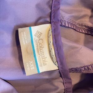 XXS (4/5) Columbia kids purple rain coat. Perfect for outdoor adventures. Small area of discoloration on cuff. Not very noticeable.