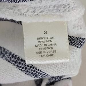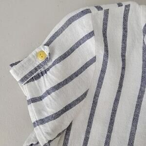 Purple Rain Striped Crop Top White Blue Women Size S Short Sleeve Linen Blend Casual Tee