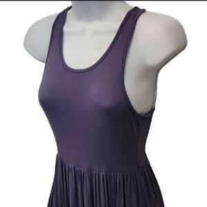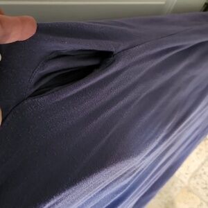Lots of stretch with pockets. No material tag but feels like a jersey knit/cotton