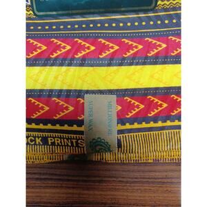 The product is a 6-yards of African fabric, featuring vibrant colors of purple, red, and yellow. The dashiki design is known for its beauty and cultural significance, making it a perfect choice for various crafts and sewing projects. With its bold and colorful pattern, this fabric is sure to add a touch of African flair to any project. There is a small spot on the front of fabric. Look at all pictures for complete condition Any Questions Please Ask Prior to purchasing Thanks