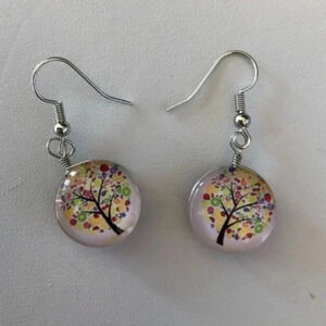 Purple Red Yellow Green Glass Tree 3D Drop Earrings NWT