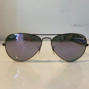 RB 3025 "Aviator Large Metal" Sunglasses. Purple mirror lense. Bronze frame. Used. Might need tightening.