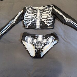 Stylish purple cut out bodysuit with rhinestone accents (one or two rhinestones missing). Features a halter top and mesh detailing. Used as beautiful pole dance outfit. Only worn once. Great for photoshoots or performances. Size medium.