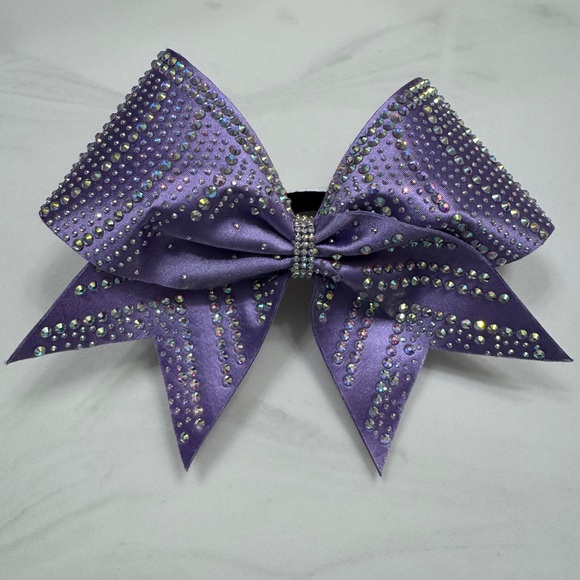 Elegant purple bow adorned with sparkling rhinestones. Perfect for adding a touch of glamour.