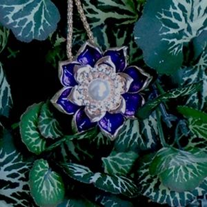 Purple Rhinestone Flower Enamel Necklace/Brooch Faux Pearl Inset