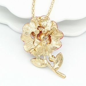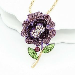 NWOT purple rhinestone flower necklace/pin. This is a pretty piece. Size: 2" by x 1.25" inches. Necklace chain: 27.5” inches. Material: Rhinestone / Enamel / Gold Plated. Really pretty colors. Lead, Nickel and Cadmium Free. Bundle and save! All reasonable offers accepted.