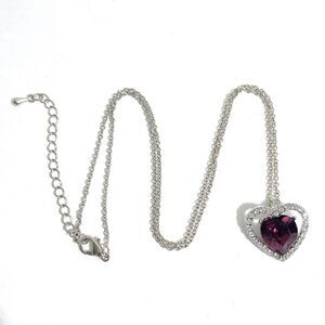 Purple Rhinestone Heart Pendant Necklace Silver Tone Dainty Chain Birthstone