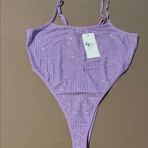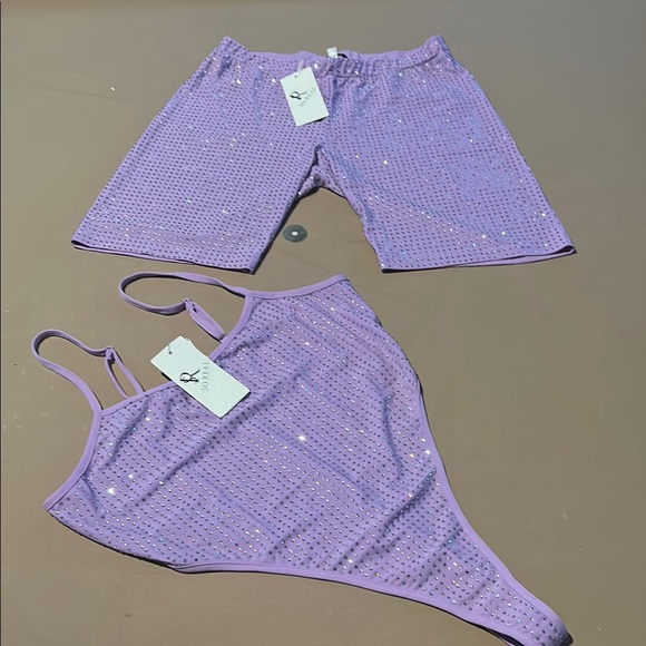 Shine in this stunning purple intimate set adorned with sparkling rhinestones. Perfect for adding a touch of glamour to your sleepwear collection or going out collection pair it with a nice blazer and some heels if you're going out and you will be the talk of the night.