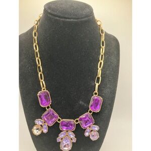 Purple Rhinestones Faceted Formal Gold-Tone Statement 21.25" Necklace!