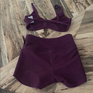 Stylish purple ribbed dance set. Includes a top and high-waisted bottoms.