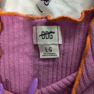 This stylish camisole from BDG features a vibrant purple hue and a ribbed texture, offering a chic and modern look. The sleeveless design with a scoop neckline and thin spaghetti straps makes it perfect for layering or wearing on its own. Its cropped length and stretchy knit material ensure a comfortable fit, ideal for casual outings or relaxed gatherings.