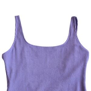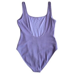Dive into style with this elegant purple ribbed swimsuit. Perfect for a chic beach look.