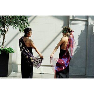 Purple Rose Flowers Garden Sheer Scarf Vintage Accessory