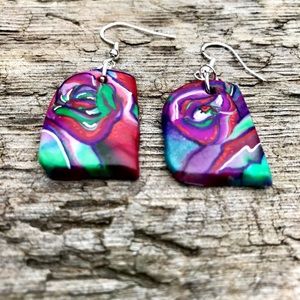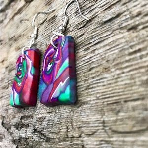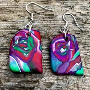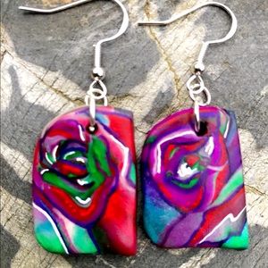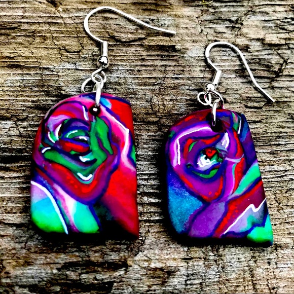 Hand painted polymer clay earrings with sterling silver hardware. Super lightweight and colorful for comfort and style. Wear a pair of original art .