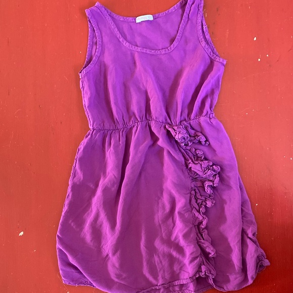 Purple lightweight dress with vertical ruffles offset from the waist to the hem. Size 5/6
