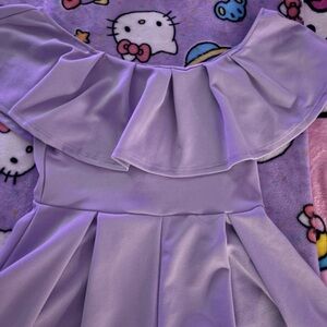 Charming purple romper with ruffle details. Perfect for any occasion.