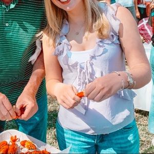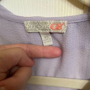 ADORABLE lavender top with ruffles! I got this at a department store (can’t remember which) and it’s Gianni Bini. Has two ties that go into bows and two very small cutouts at the shoulder. Super cute, and not sheer at all. Reminds me of something you might see on REVOLVE. Great condition. Send an offer!