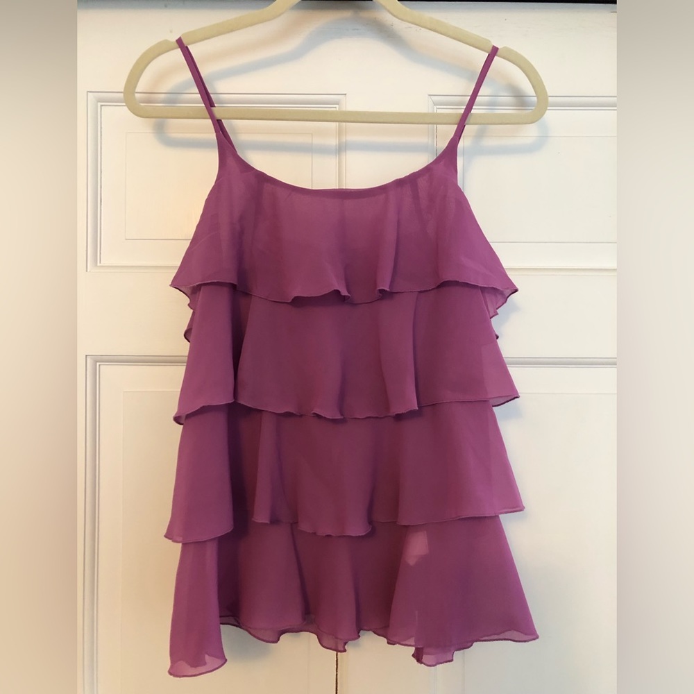A really cute purple ruffle top that is always very flattering and great for warm weather!