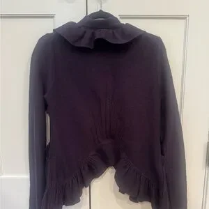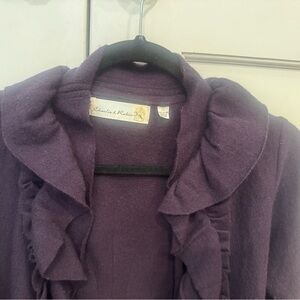 Stylish purple wool blazer / cardigan with ruffled details. Perfect for layering.