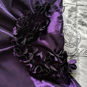 Short Purple ruffles dress, flowers on left side, very short and stretchy, zipper in back