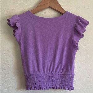 Adorable purple girls top with ruffled sleeves. Perfect for any occasion.