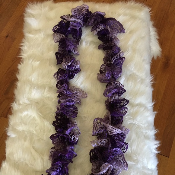 Purple Ruffled Scarf - 100% acrylic. Length of scarf measures approximately 64".