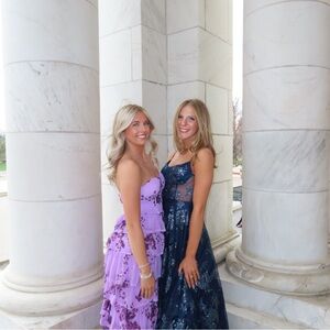 Elegant purple dress with ruffled layers and sequin embellishments. Perfect for special occasions. Only has been worn once. Size Adult Medium.