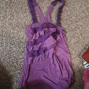 Stylish purple tank top with ruffle details. Perfect for casual wear.