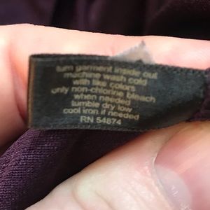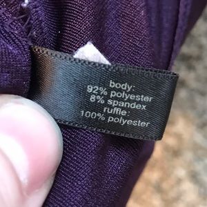 Great fall color! Purple ruffles in the front with a soft knit back flutters at shoulder are very feminine. Looks great with a blazer or cardigan.