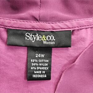 This elegant blouse from Style & Co. features a charming ruffled V-neckline and a stylish wrap design. The cap sleeves and soft purple hue add a touch of sophistication, making it perfect for both casual and dressy occasions.