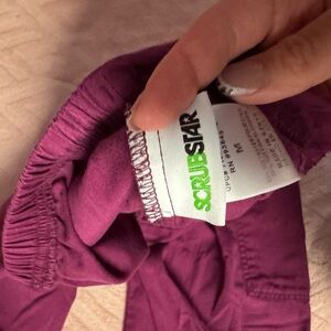 Elegant Scrubstar top in a deep purple hue. Features short sleeves and a comfortable fit.