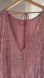 Shimmering mauve purple dress with sequins. Features a deep V-neck and tie waist. Perfect for special occasions.