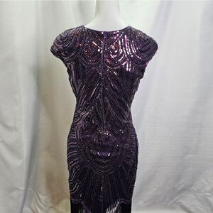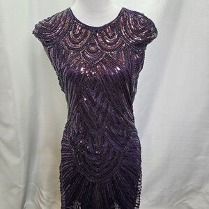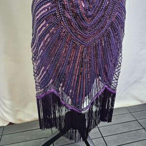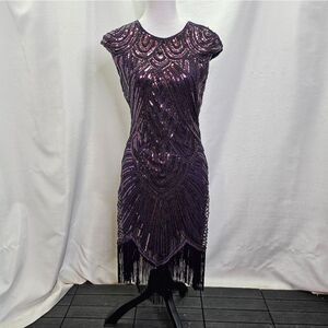 Purple Sequin Fringe Flapper Style Dress Size Small