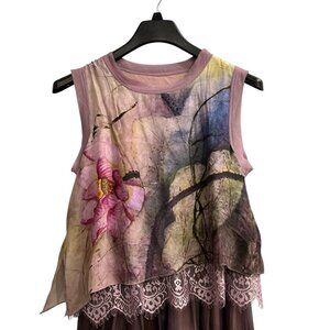 Purple Silk Midi Dress Womens L Layered Floral Lace Mesh Fairy Whimsigoth Prom