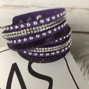 Amazing purple and silver rhinestones Wrap Bracelet with snap closure. Fits a 7” wrist.
