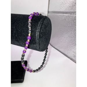 Purple & Silver-Tone Metal Various Shapes Beaded 9.75 Inch Bracelet!