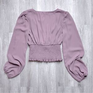 Size M dusty purple top. Surplice style with smocked waist. Cropped. Balloon sleeves. New with tags.