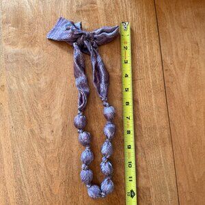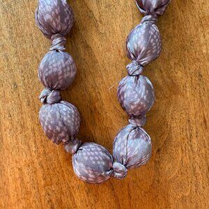 Purple Snakeskin Pattern Fabric Knotted Beaded Necklace